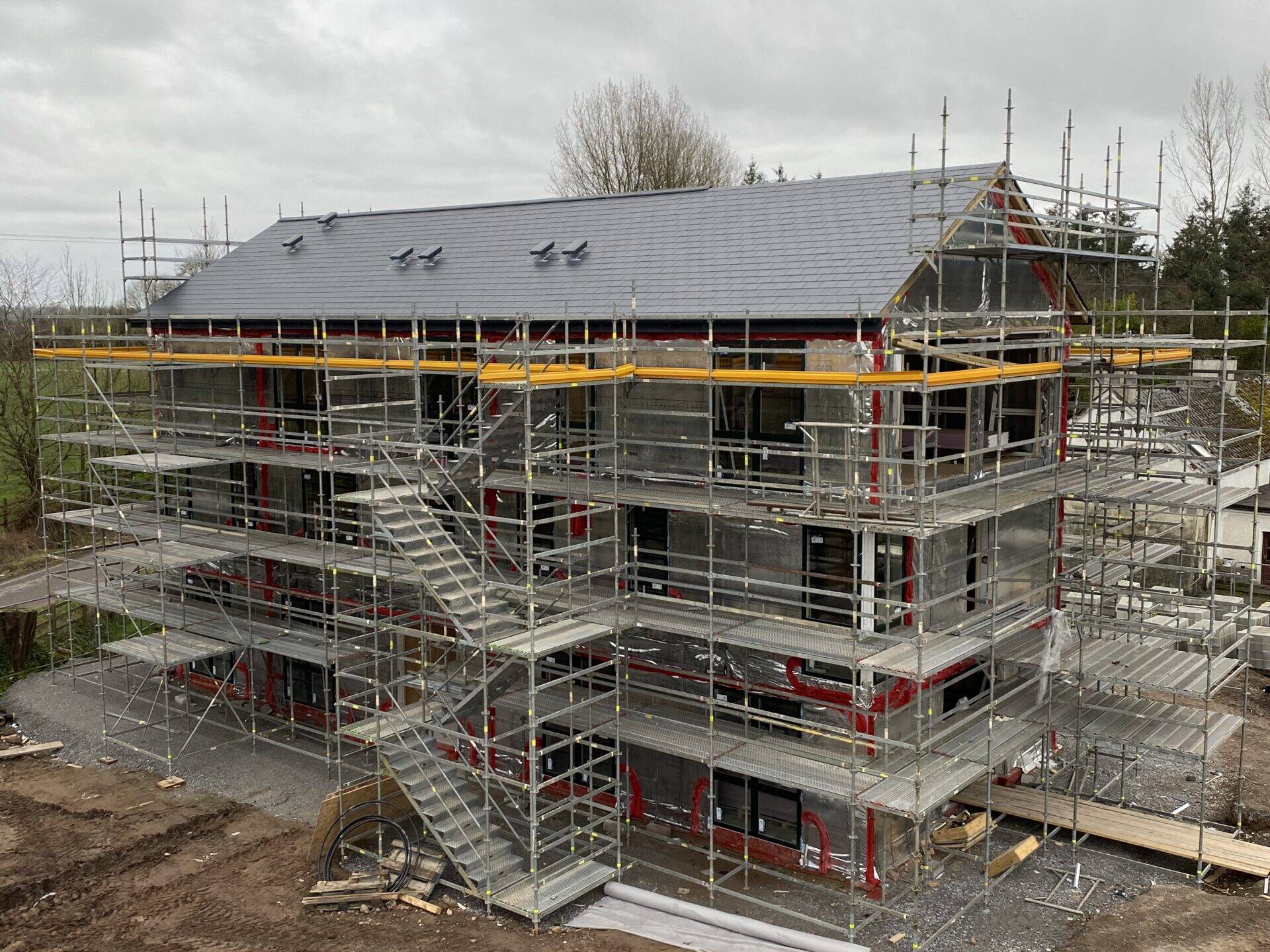 This involved the build of a new three-storey office block for Glennon Brothers Fermoy operations. Fire protection upgrades to an existing sawmill, new sawmill upgrades, a new dropsorter building, extensive yard works including surface water drainage, SUDS ponds, petrol oil Interceptors, timber infeeds and hardstandings. We successfully managed several distinct projects separately for the same client, ensuring high standards of quality, safety, and timely delivery. This project showcases our expertise in coordinating multiple works across different sectors, providing long-term value and enhanced facilities.