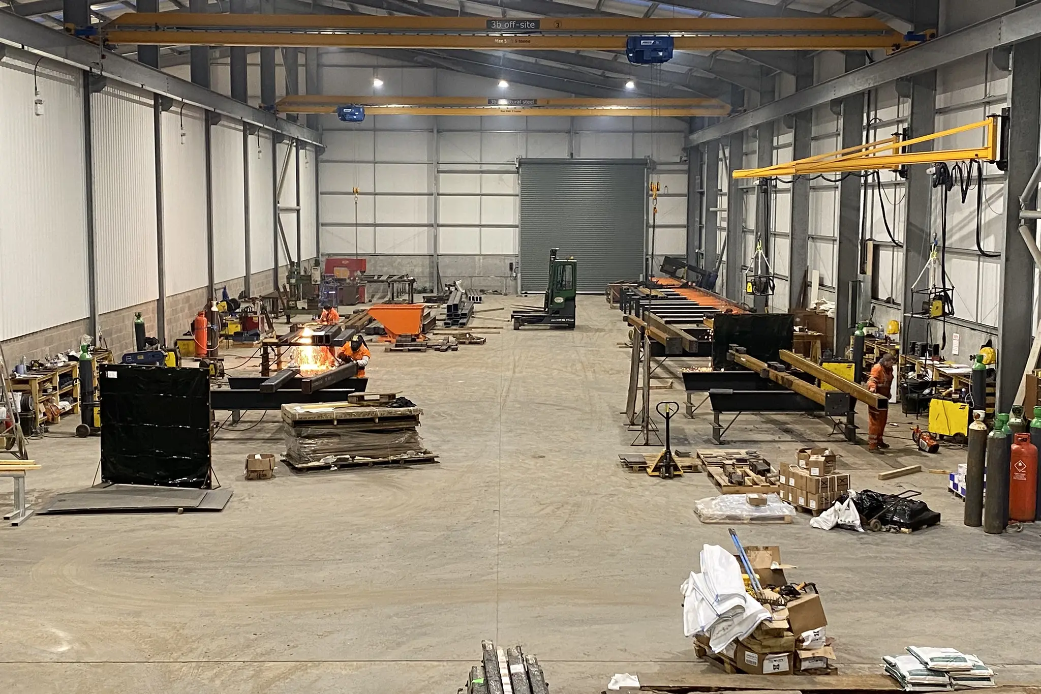 Our capability extends beyond fabrication. Steel frames are delivered using our own transport fleet and erected by our in-house teams, supported by our Crane Hire Division. We also provide cladding and associated works, with additional support available from our Building and Civils divisions where required. Wherever possible, we adopt off site manufacturing and pre assembly strategies to simplify site operations, reduce interfaces, improve safety and enhance quality. This approach shortens programme and provides clients with a practical, value driven solution